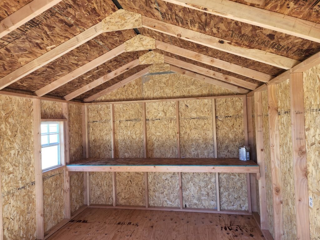 A built-in workbench spanning the full width of your shed. Perfect for gardening, tools, or extra storage.
